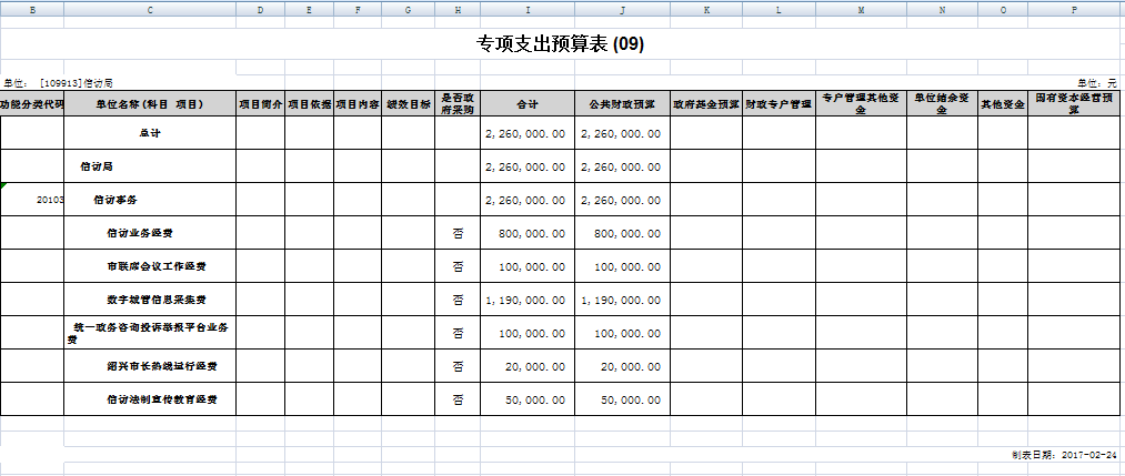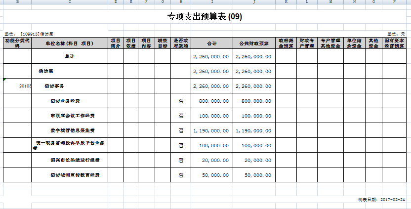 2017年信訪局財政預算表