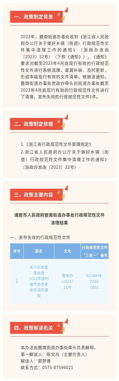 【圖文解讀】【主要負責人參與】諸暨市暨南街道辦事處關于公布行政規范性文件清理結果的通知