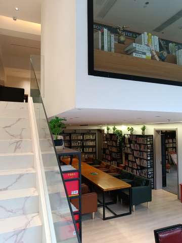 新的唐韻廣場館從唐韻廣場二樓搬遷至一樓東側,緊鄰城市廣場多戴山,環境優美,書房前有免費停車場,交通便捷。新唐韻廣場館現為上下兩層,總面積230平方米。一層設成人閱覽區和少兒閱覽區,藏書近6000冊,涵蓋經典文學、生活百科、歷史地理、科普讀物、少兒繪本等,二樓為新增的自助閱覽區,提供免費WIFI、電源插座,共有閱讀席位40個。新館裝修素雅,白色墻面置黑色書架,木質書桌配軟皮沙發,點綴各式內景裝飾,將整齊舒適與時尚悠然渾為一體。新館入口設有刷卡柱,讀者可持讀者證、身份證進入,內部配備圖書自助借還機、電子書借閱機等電子設備,方便讀者自助借閱,開放時間依舊為9:30-21:30。